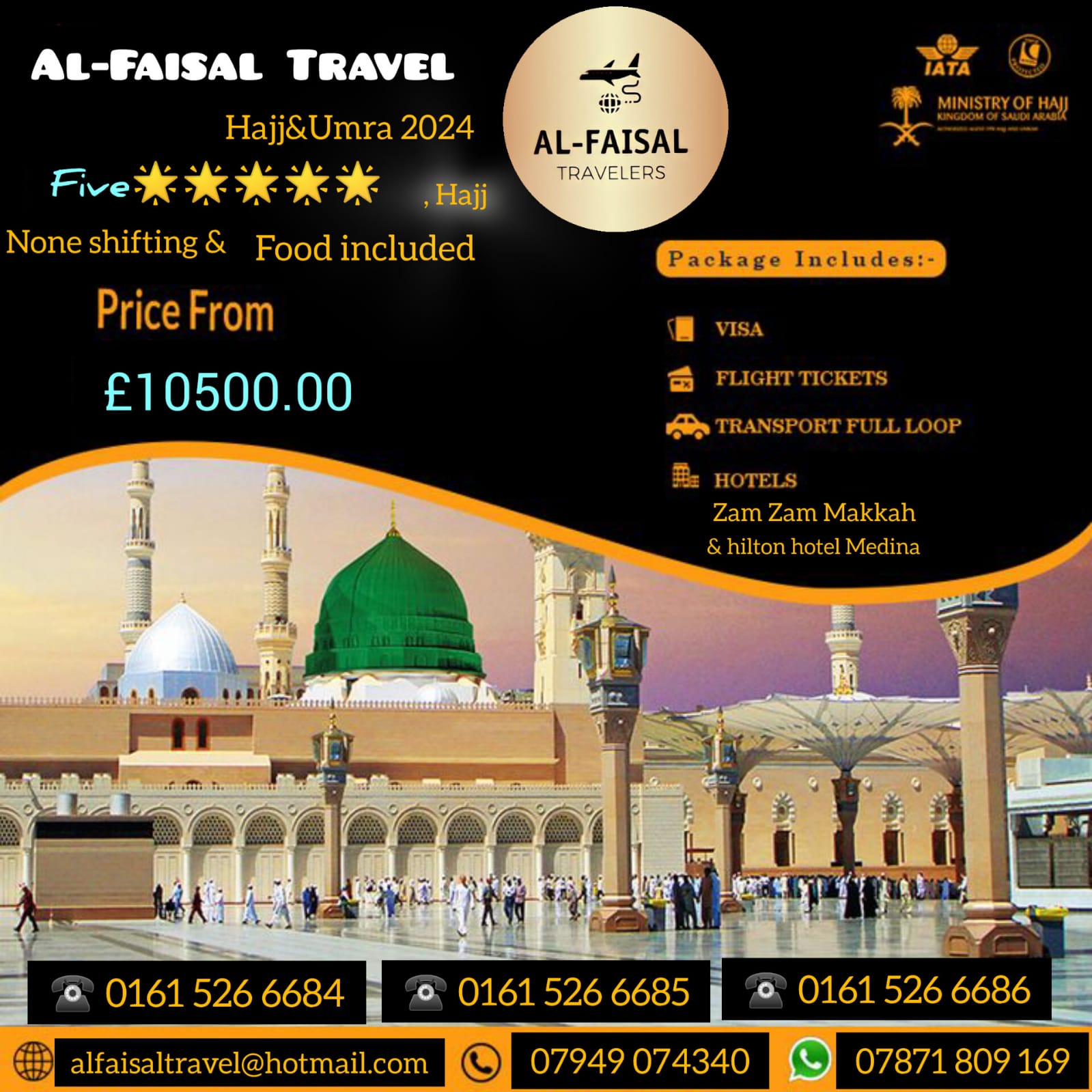- “As Muslims, performing Hajj was our lifelong dream, and Al Faisal Travel & Tourism turned that dream into reality. Their impeccable services ensured a seamless pilgrimage experience. From visa arrangements to accommodations, every detail was handled with utmost care. We felt a sense of peace and spirituality throughout the journey. Al Faisal truly understands the significance of this sacred journey and made it a profound and memorable experience for us. Highly recommended for anyone seeking a spiritual pilgrimage.”