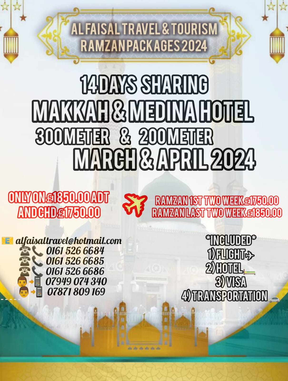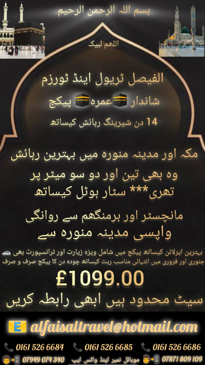 “Our Umrah journey with Al Faisal Travel & Tourism was nothing short of extraordinary. From the moment we booked our package, their team provided excellent support and guidance. The attention to detail in organizing our accommodations, transportation, and guided tours was commendable. As Muslims, we felt a sense of comfort and ease throughout our entire Umrah. Al Faisal exceeded our expectations, and we are grateful for the unforgettable experience they crafted for us. Definitely our go-to travel partner for future spiritual journeys.”
